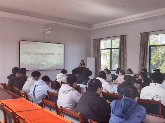 为深入学习领会《中国共产主义青年团纪律处分条例》精神,增强青年团员的纪律意识与责任担当,2025年11月19日,湖南工程学院医学工程技术学院在医工楼407开展“严守纪律规矩,勇担青春使命”主题团课。本次团课由学院团总支书记许璐主讲,各年级团员代表参加学习。
